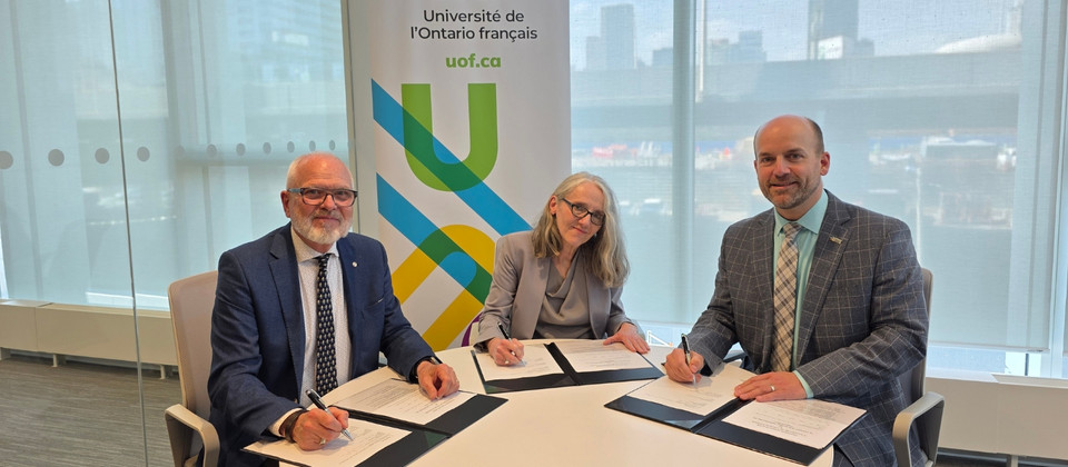 TORONTO, le 23 avril 2026 - Le Conseil des écoles catholiques du Centre-Est (CECCE) et l’Université de l’Ontario français (UOF) annoncent la signature d’une entente de partenariat permettant d’enrichir le parcours de formation et de perfectionnement des enseignantes et enseignants et à assurer la relève.