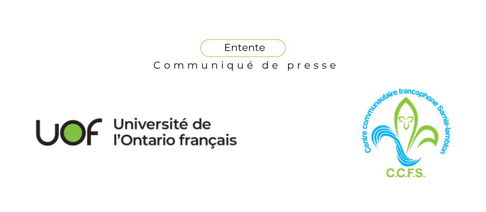 Toronto, le 6 avril 2026 – L’Université de l’Ontario français (UOF) et le Centre communautaire francophone Sarnia/Lambton (CCFS) signent une entente de collaboration visant à soutenir la promotion des programmes de l’UOF en lien avec les services offerts dans la région.