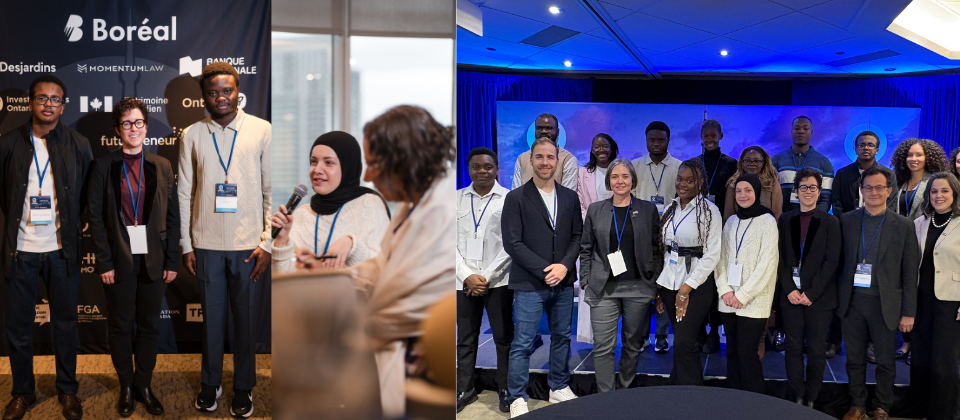 Le 28 octobre dernier, une délégation étudiante de l’Université de l’Ontario français (UOF) a pu parfaire ses compétences en littératie financière lors du Sommet francophone de la finance et de l’investissement organisé par le Club canadien de Toronto. Dix étudiantes et étudiants des programmes de baccalauréat en Économie et Innovation sociale et en Administration des affaires ont assisté à des panels portant sur des thèmes tels que les arnaques financières, l’intégration financière des nouvelles et nouveaux arrivants, les outils pour gérer son argent au quotidien, les opportunités de financement, les métiers de la finance, les revenus complémentaires, etc. Une étudiante de l’UOF, Paule Véronique Fouda, Vice-présidente de l’AEUOF et Ambassadrice aux communications numériques a partagé son expérience lors du panel sur le financement d’un parcours d’étude. Les étudiantes et les étudiants ont eu l’occasion de poser des questions et de réseauter avec des praticiennes et des praticiens du domaine de la finance et de l’investissement ainsi que des gens d’affaires de Toronto. La délégation fût accompagnée par le responsable du pôle Économie et innovation sociale, Leandro Vergara-Camus, et la coordonnatrice du baccalauréat en Administration des affaires, Isabelle Létourneau. Les services des stages, du recrutement et du marketing de l’UOF étaient aussi présents. Trois étudiantes et étudiants ont tenu à livrer un témoignage de leur expérience enrichissante.