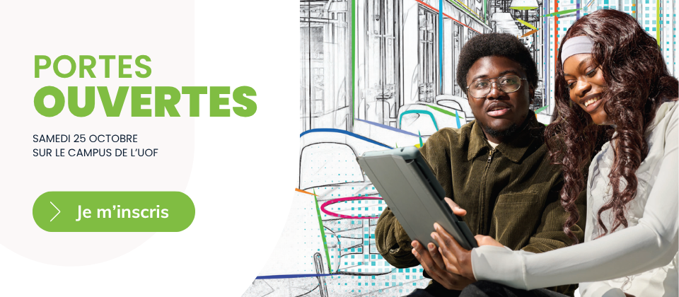 Le samedi 25 octobre 2025, l’UOF ouvre ses portes au grand public pour une journée immersive sur notre campus au coeur de Toronto. Venez en apprendre davantage sur nos programmes innovants – dont le nouveau Baccalauréat en Éducation accéléré (B.A. + B.Éd. en 4 ans seulement)et le Baccalauréat en Éducation consécutif (16 mois à temps plein) –, rencontrer nos professeurs, explorer la vie étudiante dynamique et obtenir toutes les réponses à vos questions sur le processus d’admission et l'aide financière.